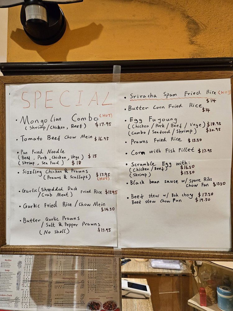House special hot and spicy sauce with zucchini, celery, water chestnuts and sweet peas